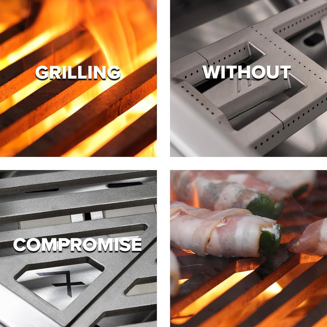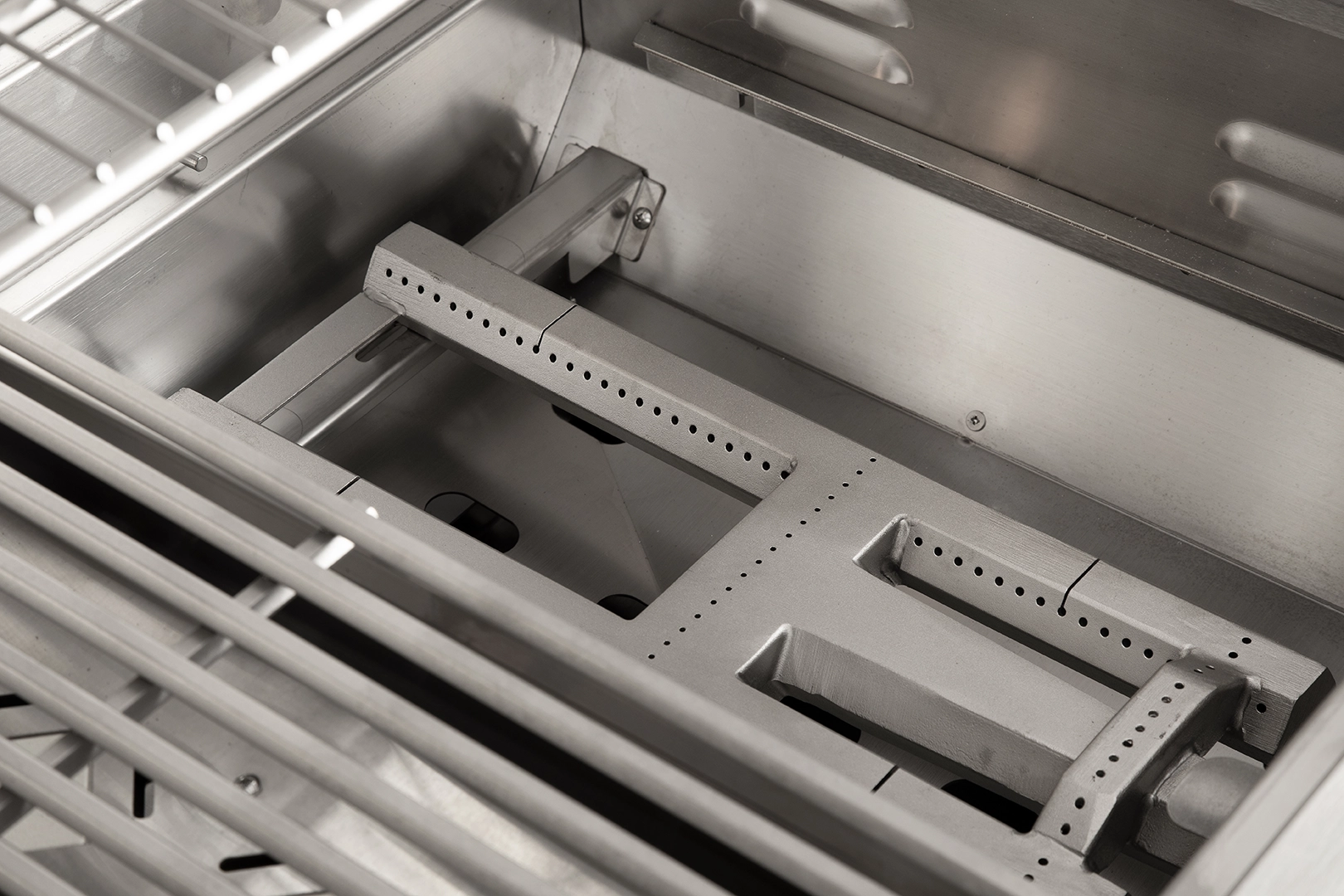 2 מבערי צורת H ראשיים, מיציקת נירוסטה 48,000 BTU + מבער אחורי 12,000 BTU.
