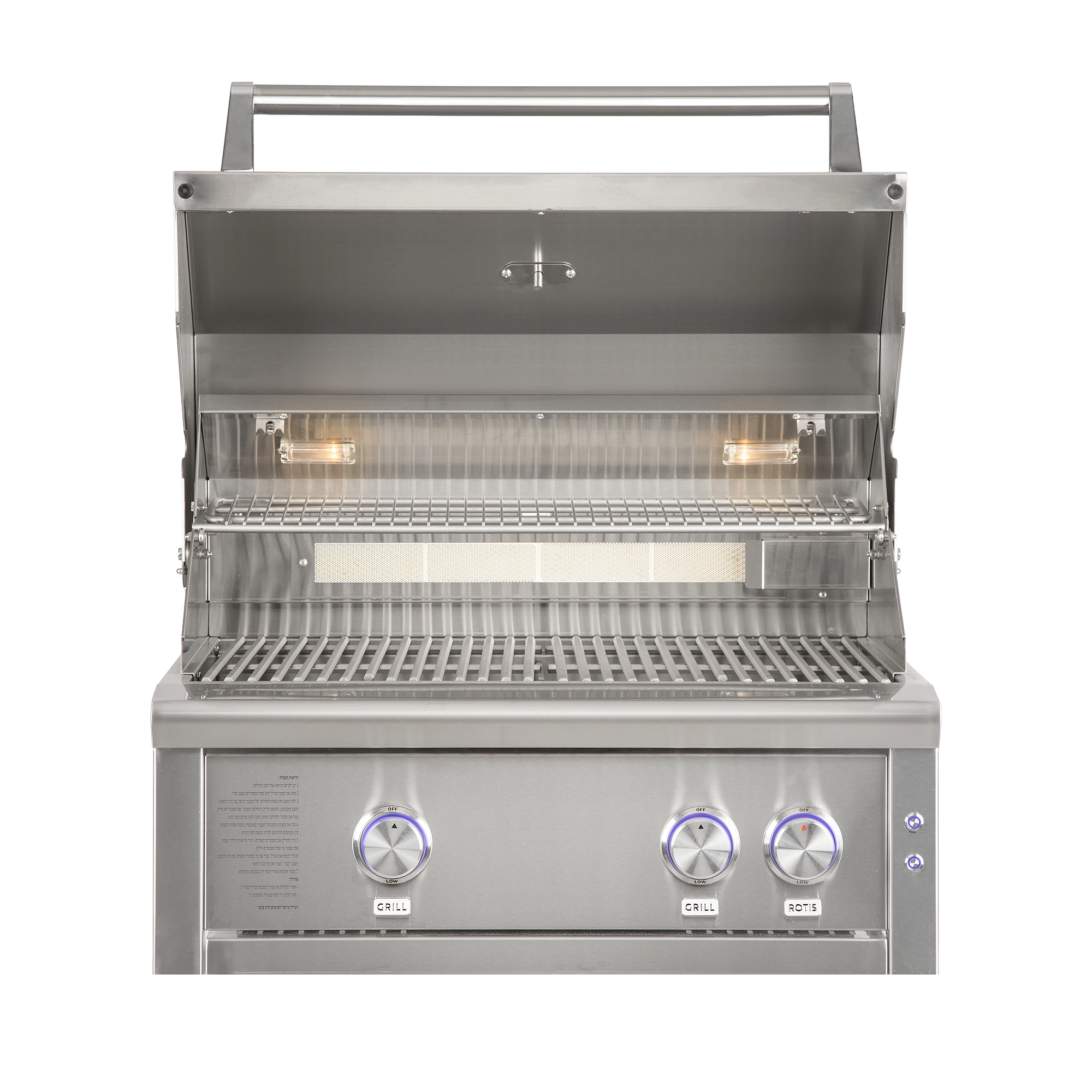 עם תאורה פנימית המאפשרת עבודה על הגריל בלילה ותאורה כחולה בכפתורים.
