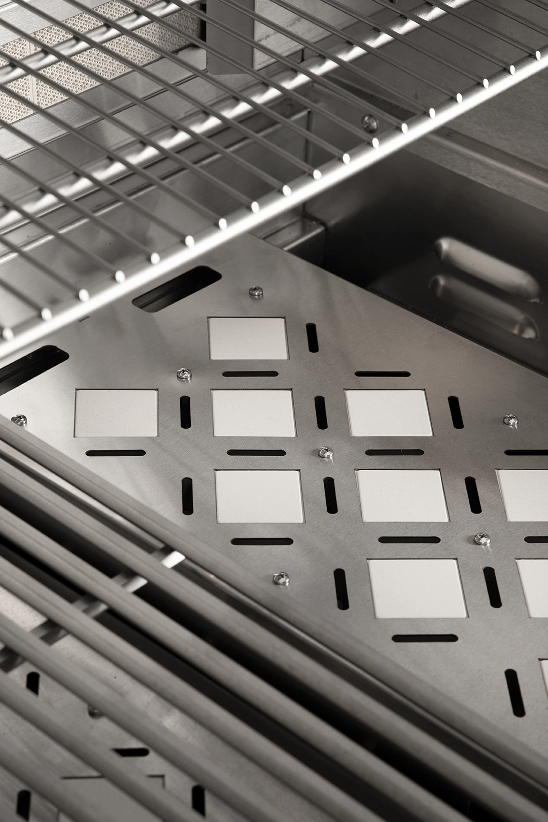 עם משטח צליה גדול עם שתי רשתות יציקה נירוסטה בעובי 8 מ"מ, ורשת (קומה שניה) לחימום/צלייה.